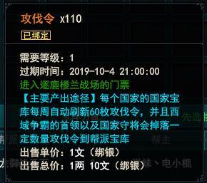攻伐令是参与到逐鹿楼兰的一个门票,玩家可通过以下两个途径获得: