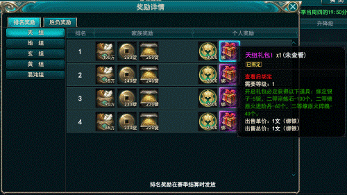 家族联赛的结算周,参与的人员会有大量淬炼石奖励,家族活动在每周四晚八点到九点。