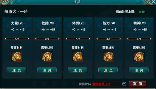 【战骑注灵】当玩家已经激活了一个战骑后,再次获得该战骑的碎片,则可以用来注灵,选择在某一个 方面进行提升。